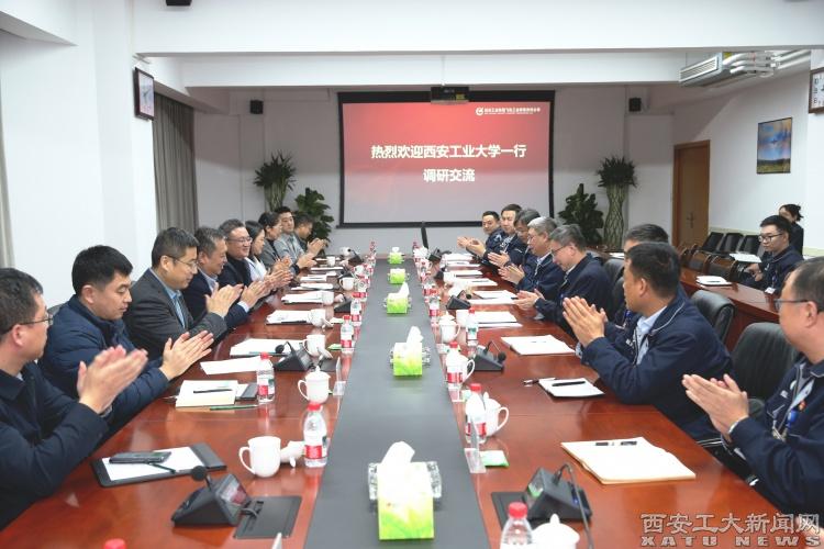 在航空工业陕飞,侯成义一行参观了公司科技展览馆和总装生产线,并与航空工业陕飞党委书记、董事长安刚围绕科研协同、人才共育等内容开展深入交流。安刚对侯成义一行的到访表示欢迎,他指出,西安工业大学军工特色鲜明,学科优势突出,办学基础扎实。希望双方进一步加强在重大项目联合申报、关键技术协同攻关等方面的合作,进一步探索人才联合培养机制,共同赋能国防科技高质量发展。